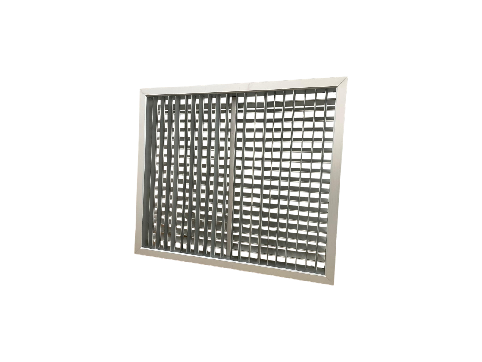 BMAI-VO: Bocchetta a doppio filare di alette (alette frontali parallele al lato corto, posteriori parallele al lato lungo) in alluminio.