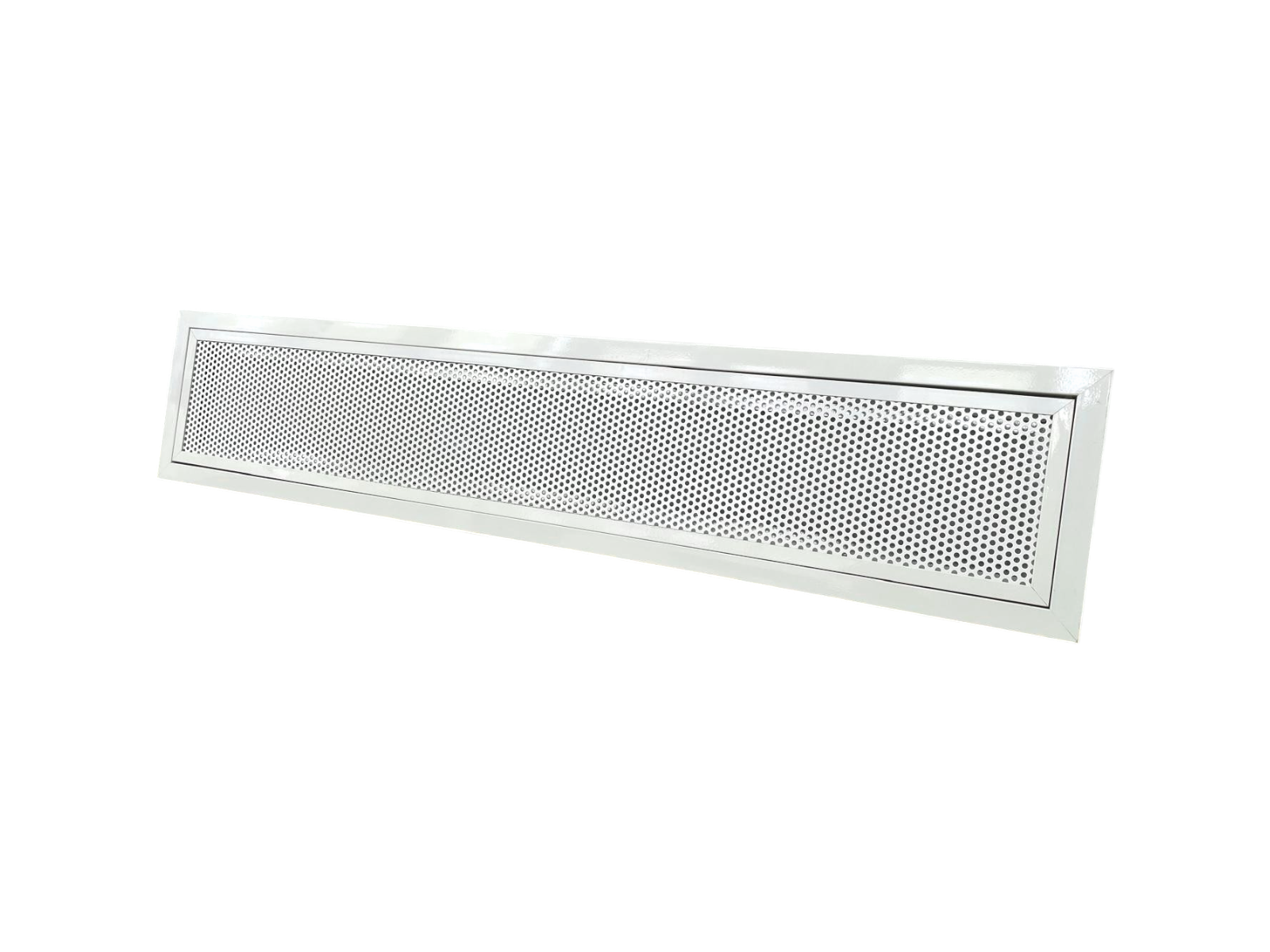 Griglia di ripresa a schermo forellinato con controcornice completamente estraibile per l’alloggiamento e la sostituzione del filtro.