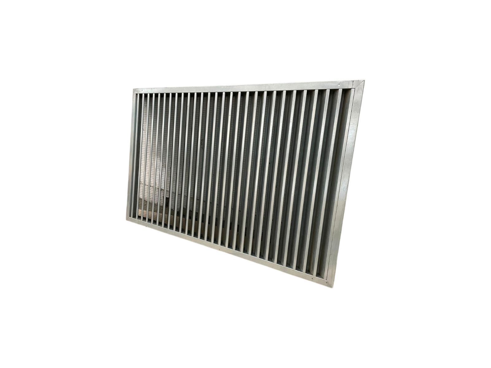 Griglie di ripresa industriali ad alette fisse 45° passo 50 mm.